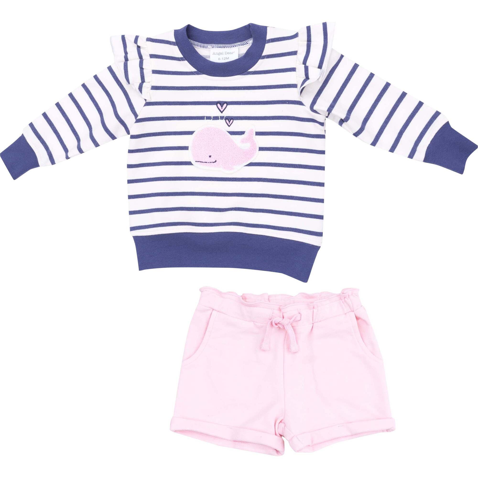 Make waves in style with this Bubble Whale Set by Angel Dear! Featuring a striped ruffle-sleeve sweatshirt with a chenille whale patch and matching pink paperbag shorts, it's comfy, cute, and perfect for playful days.