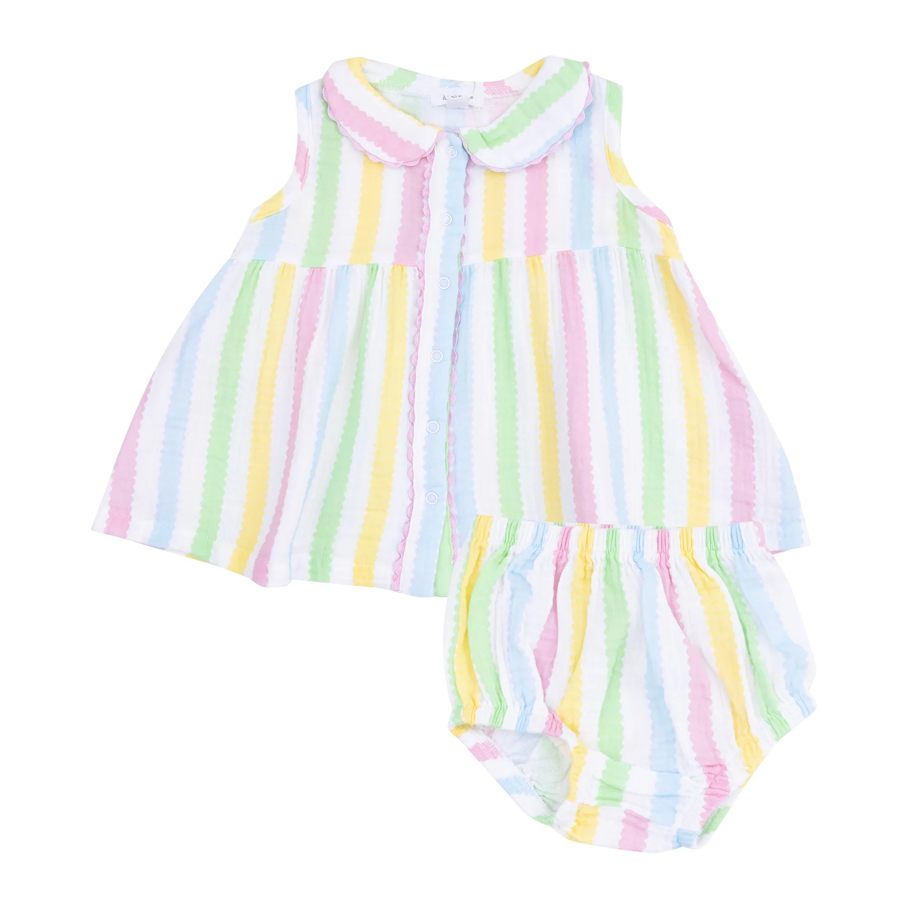 Angel Dear Ric Rac Stripe with Ric Rac Trim Peter Pan Button Front Dress