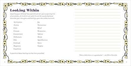 - Prompts to help you prepare―Reflect on how you can help your child as they become a parent, write your future grandchild a letter, and focus on being more mindful and present as you await the baby's arrival.