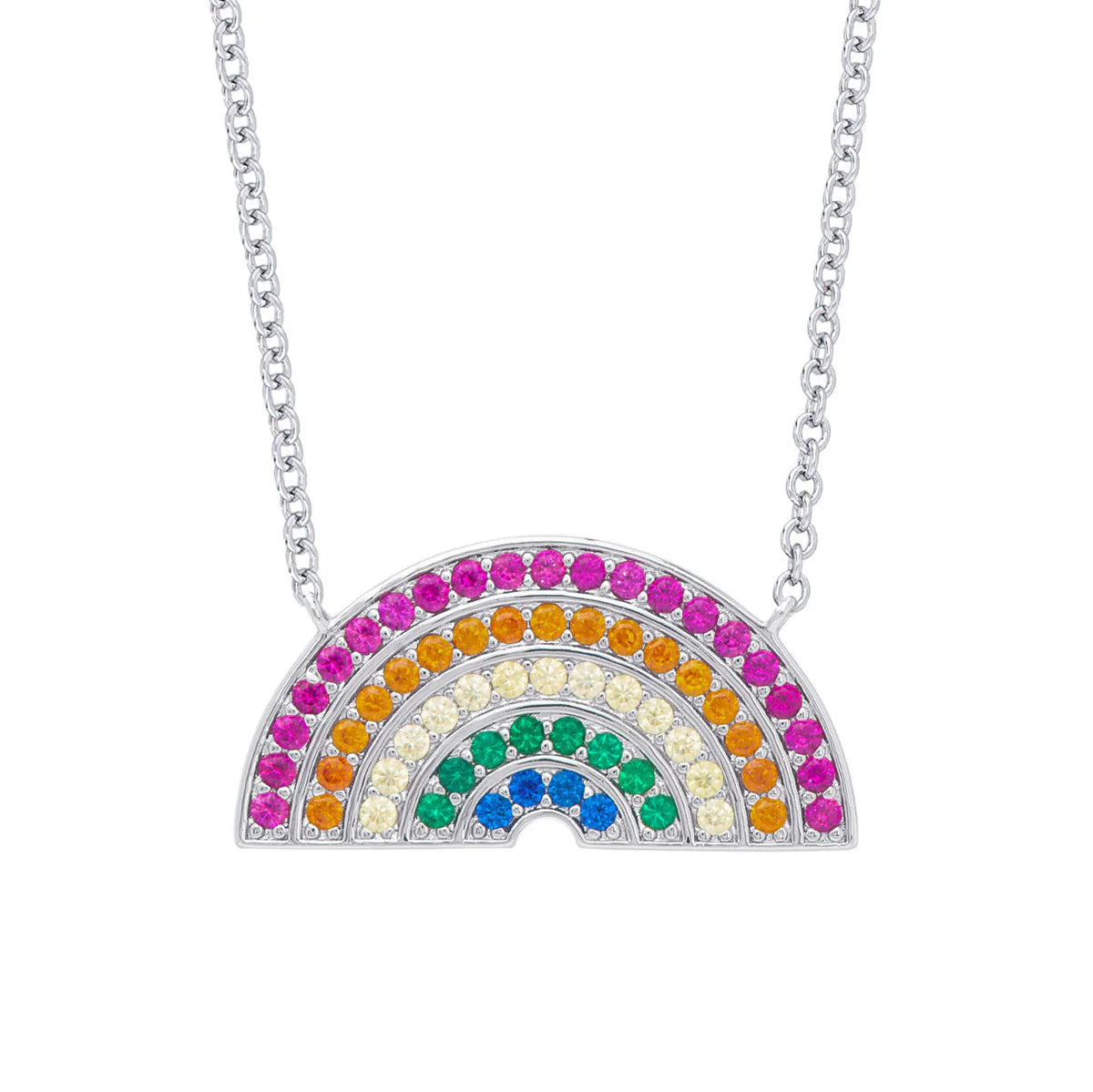This beautiful necklace features sparkling rainbow colored CZ gemstones. Chain is adjustable 14" - 16" and secures with spring clasp.