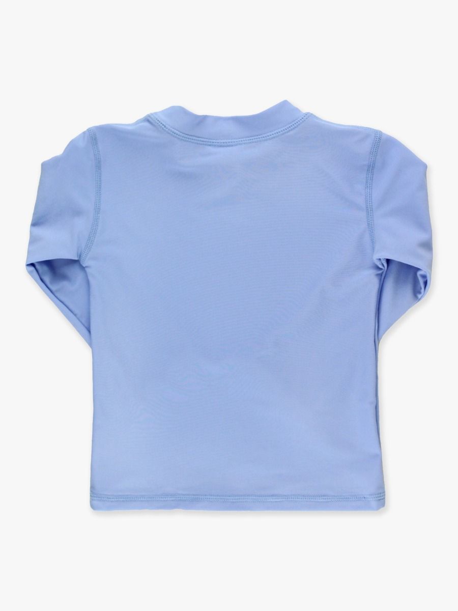 Periwinkle Blue Long Sleeve Rash Guard is the perfect swimwear for your little boy. This stylish and sporty rash guard offers UPF 50+ sun protection, making it an ideal choice for a day at the beach, pool, or ocean. The long sleeves provide additional coverage, while the lightweight and breathable fabric ensures your child stays comfy and cool. Thanks to its quick-dry feature, your kid can easily transition from a swim to a beachside game. This durable rash guard is also flexible, allowing your child to move freely while engaging in his favorite water sports or beach games. The periwinkle blue color is vibrant and fun, and it pairs well with matching colors like white, gray, yellow, and brown. With its stretch feature, this rash guard is not only protective but also offers a snug and comfortable fit. Keep your child stylish, protected, and comfortable with our Periwinkle Blue Long Sleeve Rash Guard.
