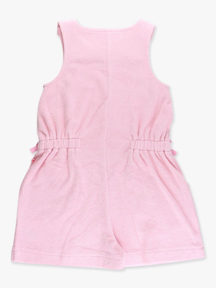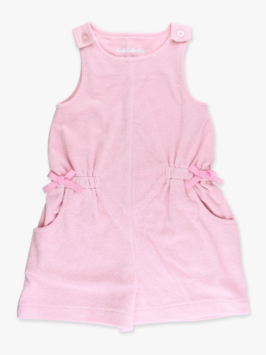 Pink Terry Cover-Up Romper. Perfect for sunny beach days, this girls pink summer romper combines style with comfort. Crafted from plush terry fabric, it features a convenient button closure, making it easy for quick changes. The pink plush cover-up is designed with an elastic waistband for a snug fit and includes pockets for stashing small treasures. The non-functional drawstrings add a touch of whimsy without compromising safety. Its vibrant pink color makes it a standout choice for any summer wardrobe, ensuring your little one looks adorable while staying comfortable. Ideal for poolside play or lounging after a swim, this pink terry beach romper is a must-have for any fun-loving girl!