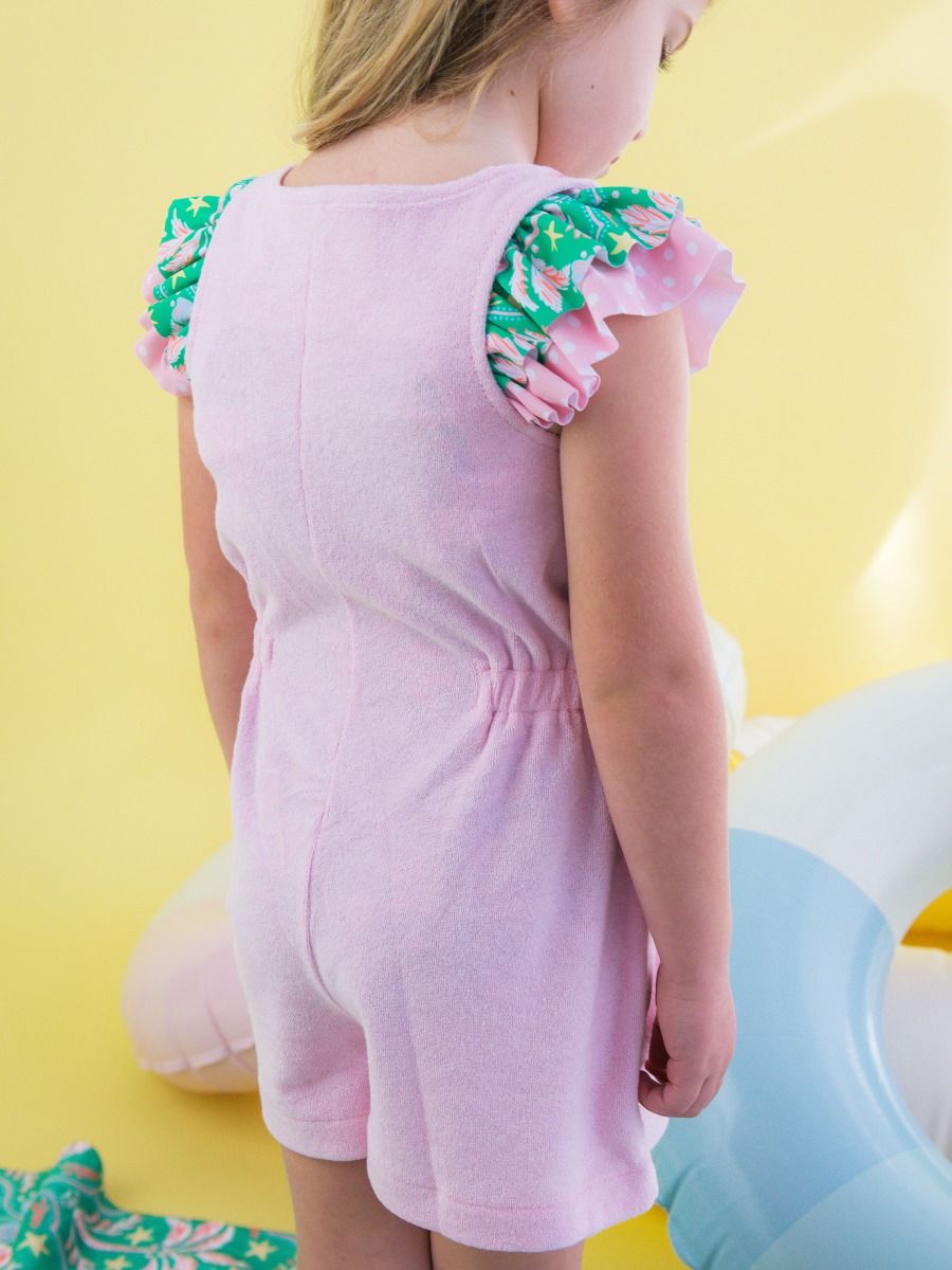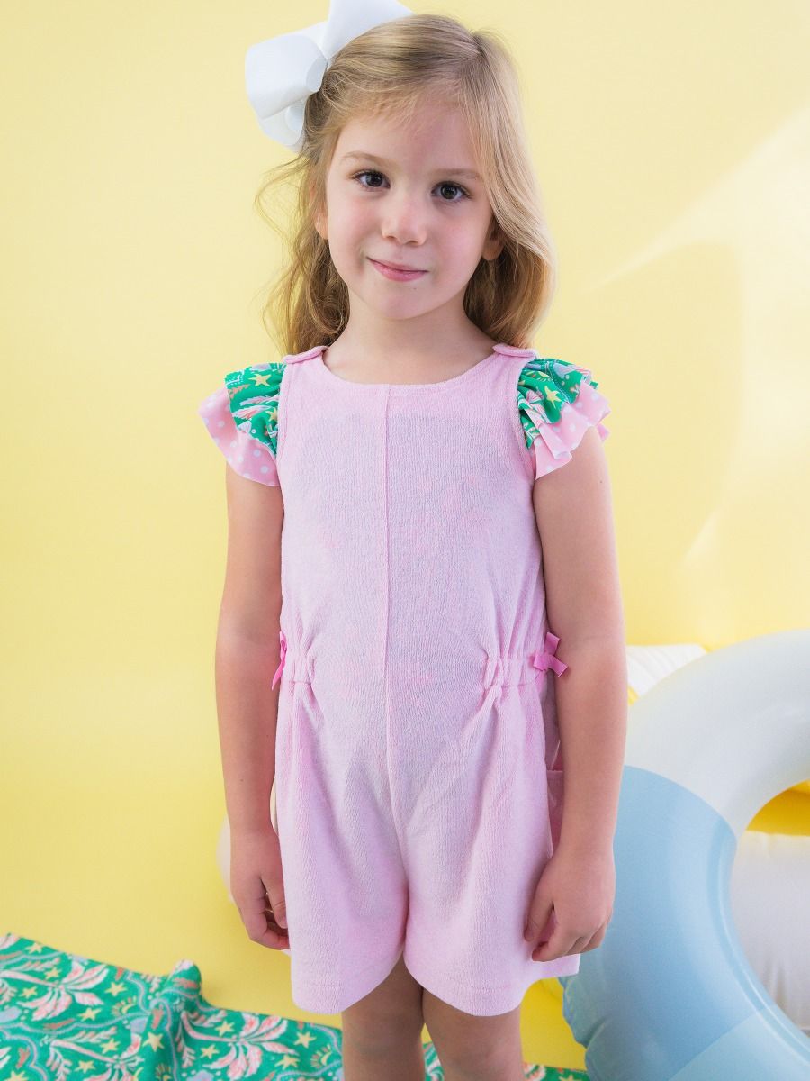 RuffleButts Pink Coastal Cane Terry Coverup Romper