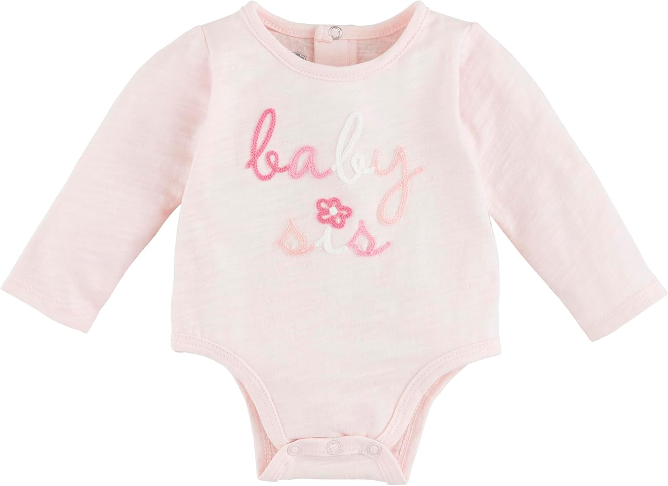 - Printed interlock long sleeve crawler with blanket stitch detail and inner leg snap closure.