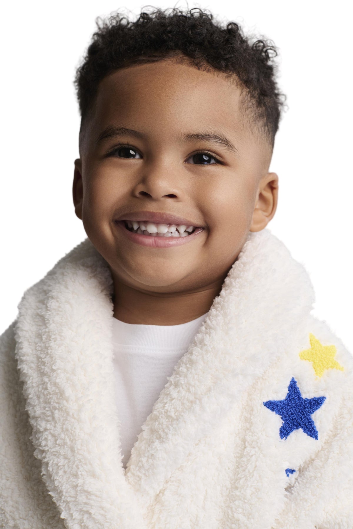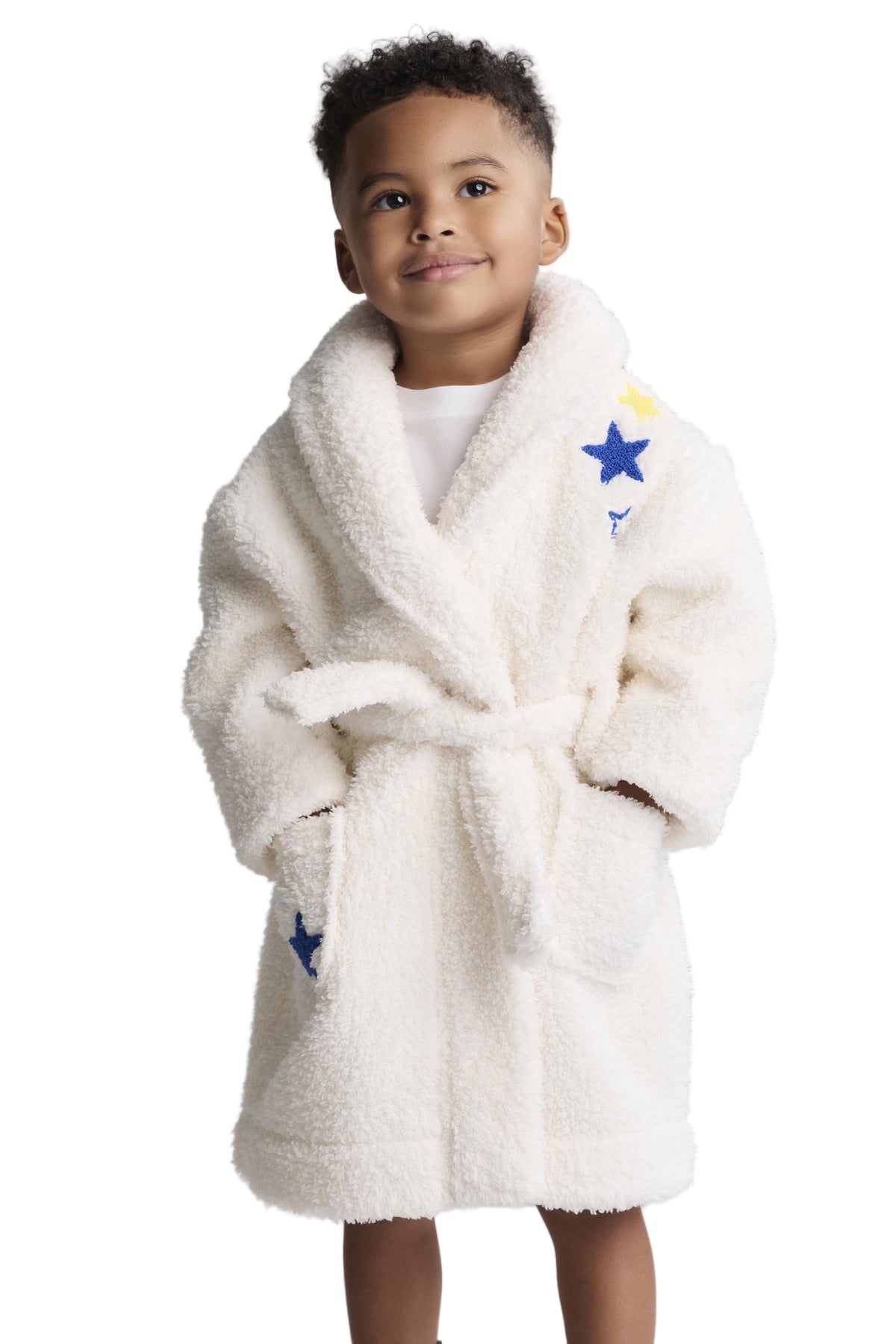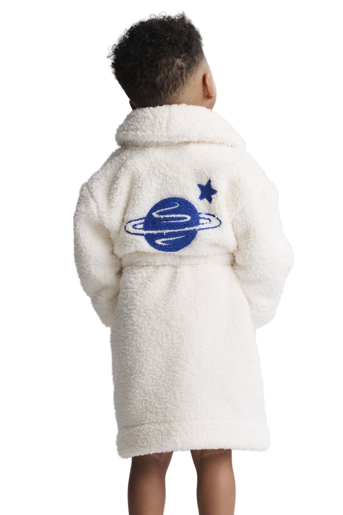 Barefoot Dreams Cream Brushed Youth Embroidered Planet Robe