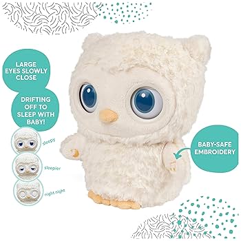 Let your little one know that everything is going to be owlright with the Sleepy Eyes Plush Owl Soother with Sound and Lights by Gund. Measuring approximately 8 inches, this beautiful plush owl is made from a cloud-soft creamy plush fabric, and has beautiful big blue eyes that slowly close as the plush owl – and your little one – drift gently off to sleep. With two play modes, the Sleepy Eyes Plush Owl Soother with Sound and Lights by Gund can help your baby to wind down at the end of the day with a lullaby and gently glowing lights, or, in nighttime soother mode, soothing sounds will gently play as the stuffed owl’s eyes slowly droop. Customize your baby’s bedtime routine with the adjustable volume and night light, but don’t be surprised if you fall asleep too, as the power of suggestion in the Sleepy Eyes Plush Owl Soother with Sound and Lights by Gund’s eyes will lull you into a deep state of relaxation, as well as your baby. Surface washable, this delightful owl stuffed animal also has embroidered details to ensure it’s totally safe for tiny tots.