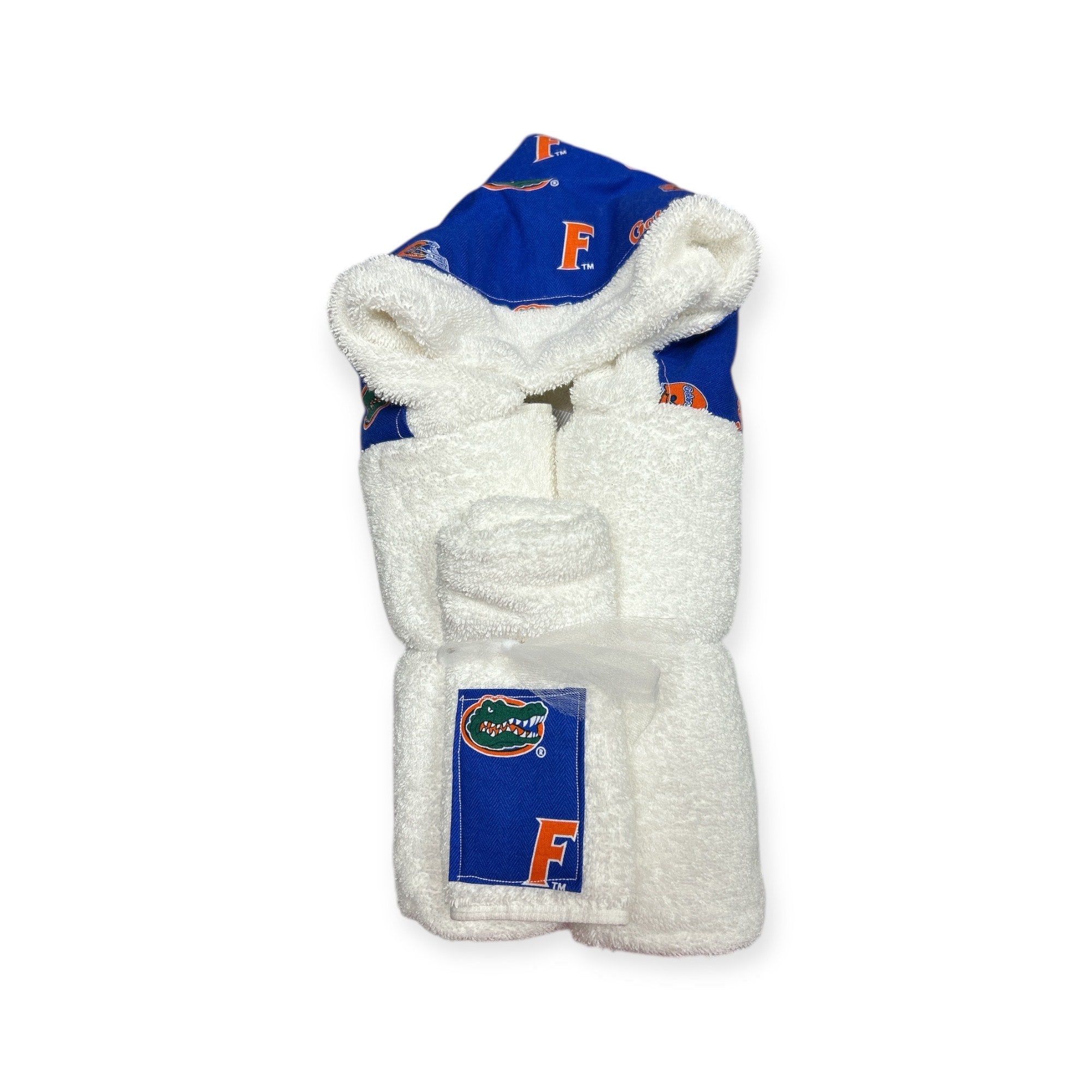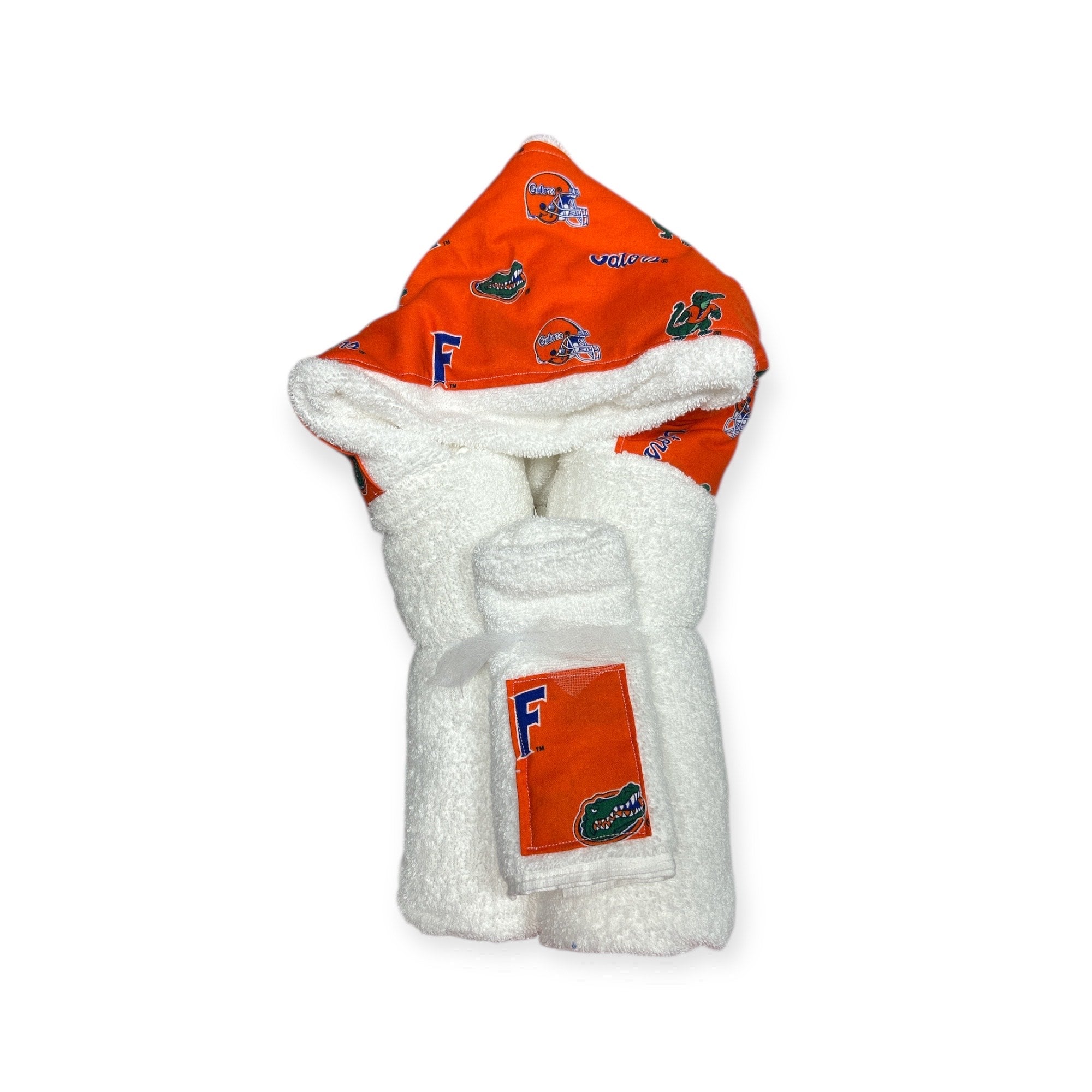 Widensky's UF Hooded Towel and Washcloth Set is crafted with comfort in mind. This ultra-soft hooded towel and washcloth set ensures your little one stays warm, dry, and cozy after every bath. Whether it's bath time at home or drying off at the beach, this set offers premium absorbency, durability, and fun team pride.