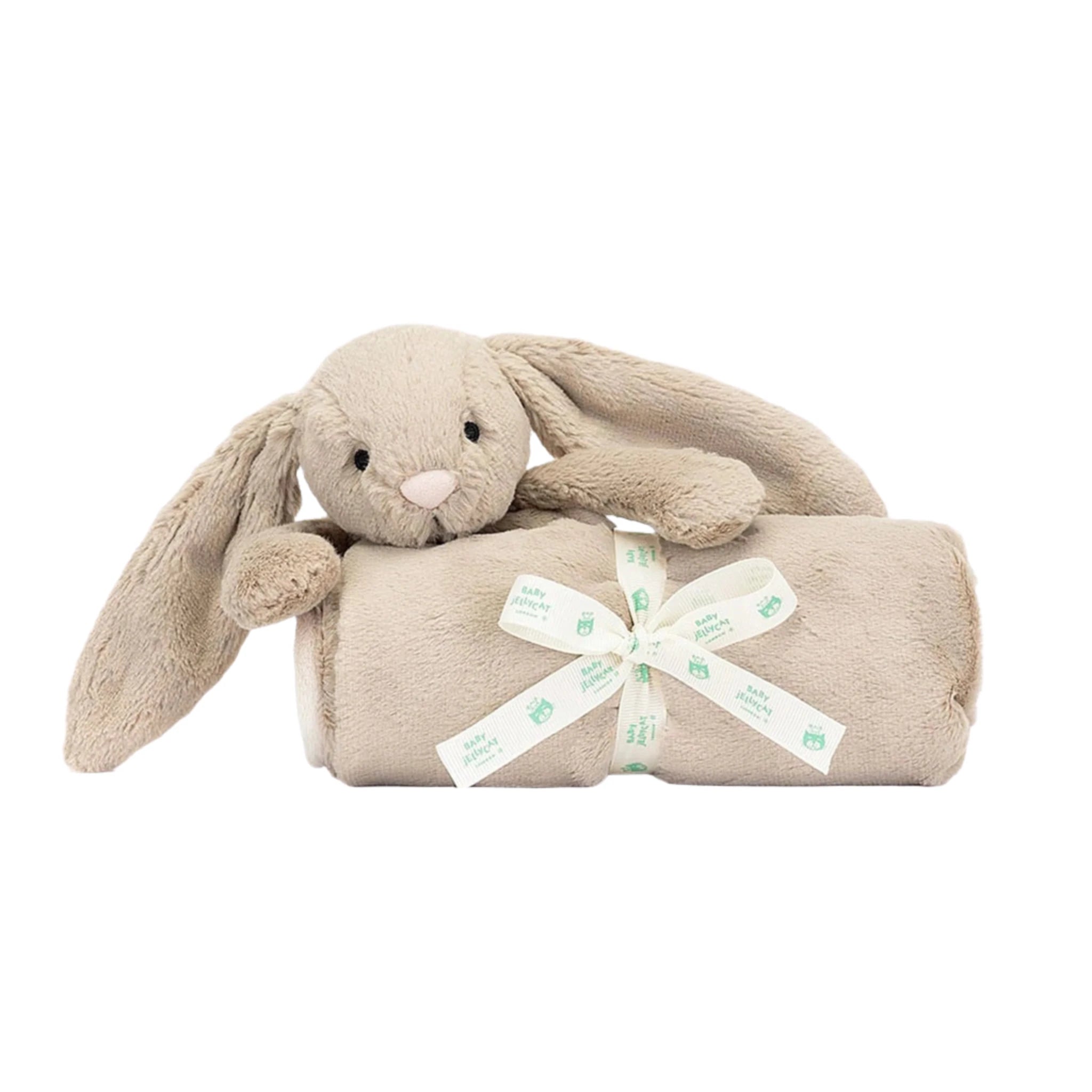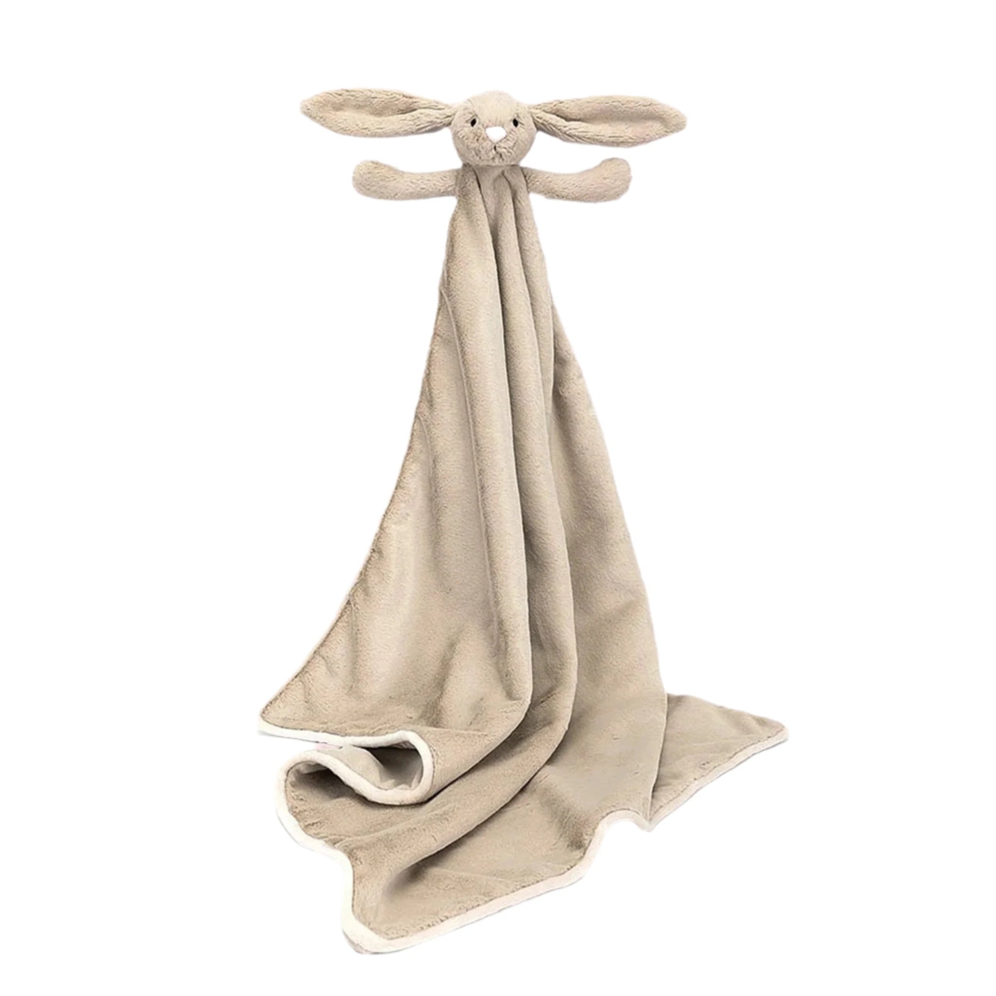 Bashful Beige Bunny Blankie combines our most loved Bashful Bunny character’s long lop ears, pink suedette nose, embroidery eyes and soft squashy paws with a blankie made from the same cloud soft, mushroom silver-grey fur in recycled fibers.