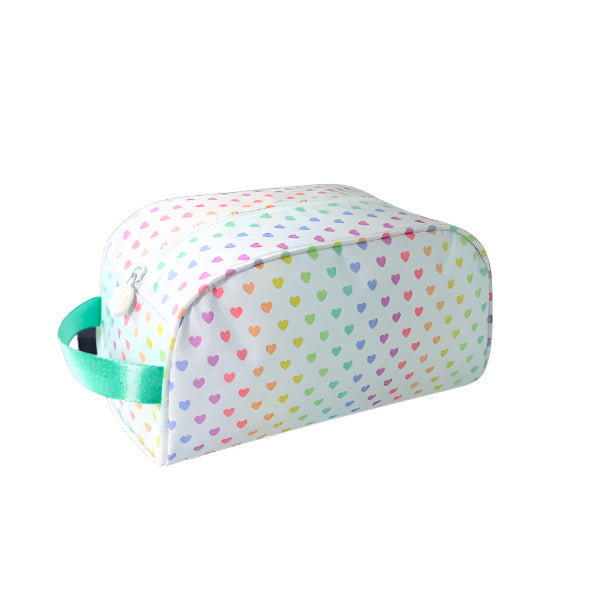 An updated version of our dopp kit, the travelers are a little bit smaller and a whole lot cuter! Perfect for travel anywhere - camp, slumber parties, vacations, the gym..... They make great gifts too!