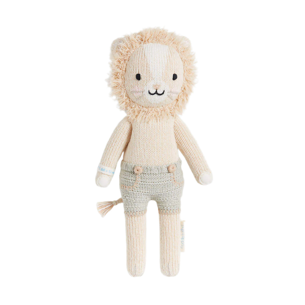 Meet Sawyer, one loving little lion doll from Cuddle+Kind. Clad in pale blue shorts, this soft and durable stuffie is destined to become the pride of your child's playthings. This heirloom-quality doll is entirely hand-knit using premium 100% cotton yarn and filled with a hypoallergenic polyfill, providing the perfect cuddle weight. From his mane to the buttons on his shorts, Sawyer is meticulously crafted by talented artisans in Peru and Nepal who share a strong cultural heritage around knitting. Cuddle+Kind embraces fair trade practices, and best of all: Each doll provides 10 meals to children in need around the world, including the United States and Canada.