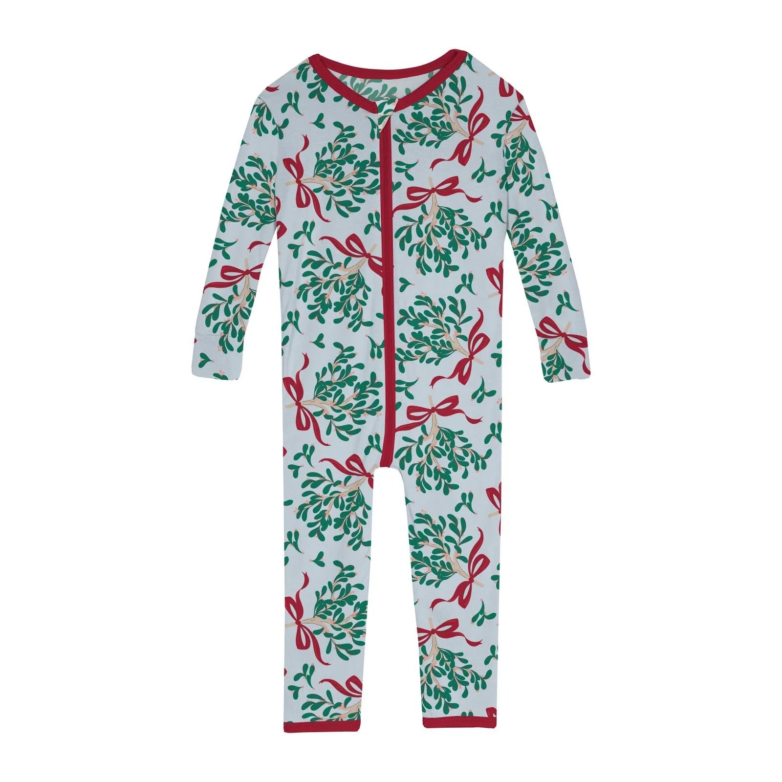 Kickee Pants Blue Mistletoe & Ribbons Convertible Sleeper with Zipper