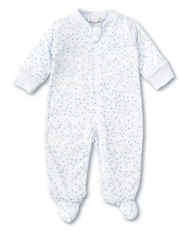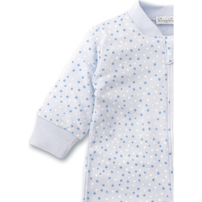 The Kissy Kissy Superstars Blue Zip Footie wraps your little one in softness and celestial charm. Made from luxurious Peruvian Pima cotton, this footie features a sweet blue star print and a full-length zipper for easy, fuss-free changes. With built-in footies and a cozy fit, it’s perfect for dreamy nights and cuddly days—soft, soothing, and made for your little superstar.